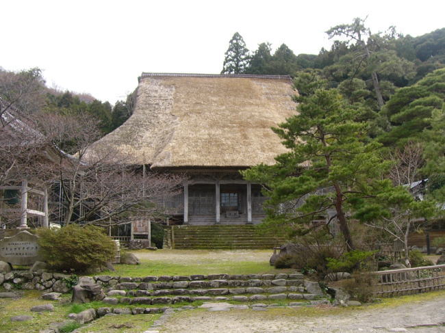 今では珍しい茅葺き屋根の本堂があり、4月下旬頃(ゴールデンウィーク頃)には美しい