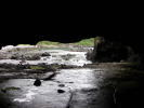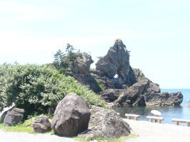 途中には義経と弁慶が碁を楽しんだと言われる、表面が碁盤のように縦横に線の入った碁盤島が見られます。 |