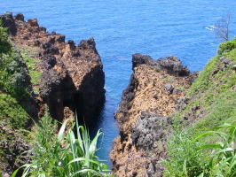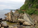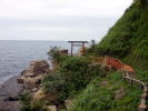 | 関の鼻から遊歩道で、松本清張の「ゼロの焦点」で有名な「ヤセの断崖」、嵐を避けるために義経が舟で身を潜めていたと言われる義経の舟隠しが続きます。 |