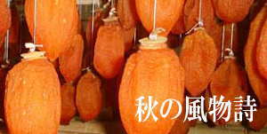| 11月頃、志賀町名産の“ころ柿”作りが始まり、日当たりの良い軒先などに吊るされます。 |